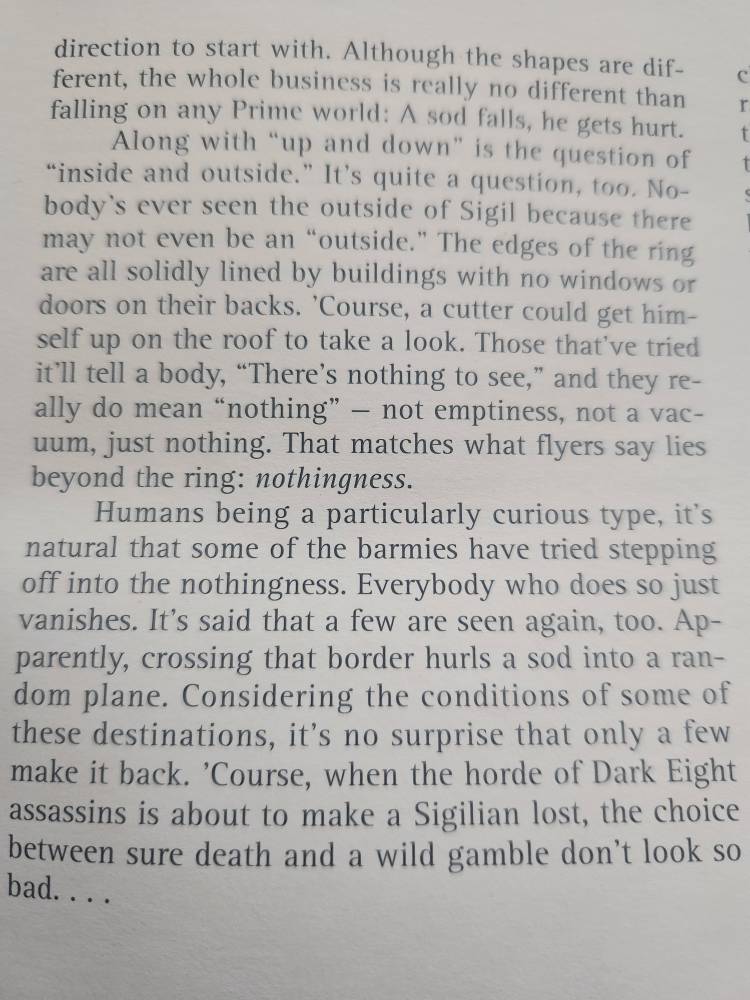 Of course, I and my kind are irrelevant now, so I guess I'm just shouting into Sigil's lack of "outside".