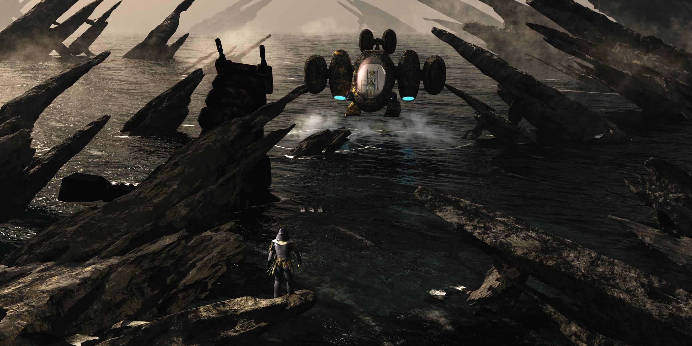 One of my first favorite ship designs is kind of a cross between the Rasa from Dark Matter, and a Firefly - looks like a small Rasa, with the interior function of the Serenity, if not the plan. I featured this in Rogue's Run, a two-shot I wrote where the PC smugglers are taking illegal cargo to be delivered to an asteroid pirate station, while having to deal with a naval blockade in the Drift preventing or watching all ships approaching the beacon drop point to the asteroid. So the PCs are forced to use a pre-Drift smuggler's route across known space, with natural boosters in places to make the incredible long journey more viable, hence why smuggler's used it. So while it has a place to start and destination for some adventure, the focus of the two-shot is the trip to get there - having to deal with Sector police patrols, naval mine field, and something I call the Sisters, a pair of black holes that counter rotate in their spin, with overlapping event horizons, which can jet a starship riding it at incredible speeds and enormous distances, but there's risk in doing it.