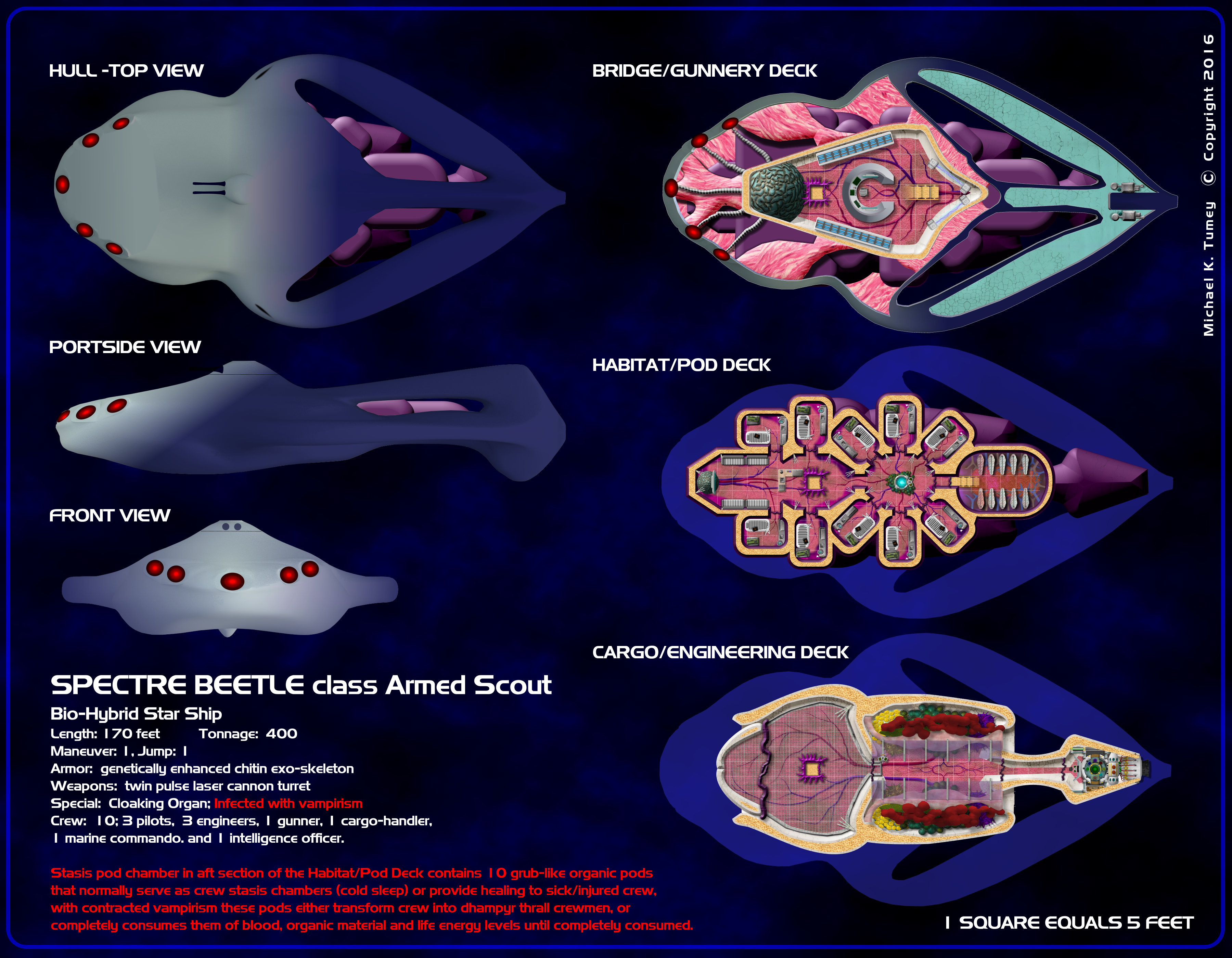 My first love in Starfinder were starships, of course, right away, I needed more starships rules to fill all the holes, and options I wanted, so Edward Moyer and I started filling them with what essentially became our Starship Operations Manual, 3 years before Paizo released theirs, called Starships, Stations and Salvage Guide. While my station rules were quickly superceded with the appearance of Super Colossal as an infinite bay structure, but only a handful of remaining mechanics have been replaced with official versions by Paizo, the rest is still unreplaced. I needed things like cloaking shields, grappling arms, boarding holds, drop pods, etc. So some of the ships below feature stuff you won't find in the Core nor the SOM. While a lot of the ship deck plans in that book are of weird ships - biohybrids, undead ships, I had to in order focus on the new kinds of ships, Ed created. Most of my ships are more hard sci-fi in design, which I prefer doing.