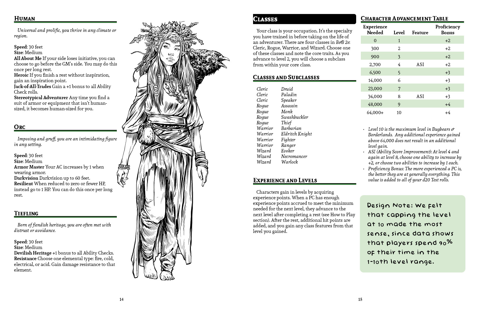 So here are some ideas. Just rough drafts. I find it easier to analyze things when I see it presented in a more formal format. B&B originally had backgrounds, and after thinking about it and thinking about what you said, I think for a primer the more familiarity the better. So I stripped out those custom options from the species and put a background list back in.