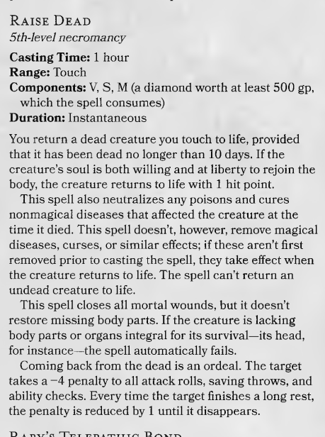 hit points, then gnaws at the person you have resurrected, who takes days to recover well enough to qualify as an adventurer or combatant.