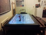 Sadly, my basement flooded a few months ago and the table was ruined. So for the past six weeks, I have occupied a lot of time in between work by rebuilding it (and building a D&D bookshelf to go with it and by repairing the basement window that I broke while trying to close it and refurnishing my man-cave). Anyway, it is back and better than it was before, now with drawers, shelves, and cup holders.