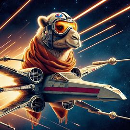 UPDATE: By way of reference to what I mean here is a zany, stupid, image not worth publishing of a camel flying an X-Wing fighter, but which illustrates that leading AI generators know a lot about Disney copyright works: