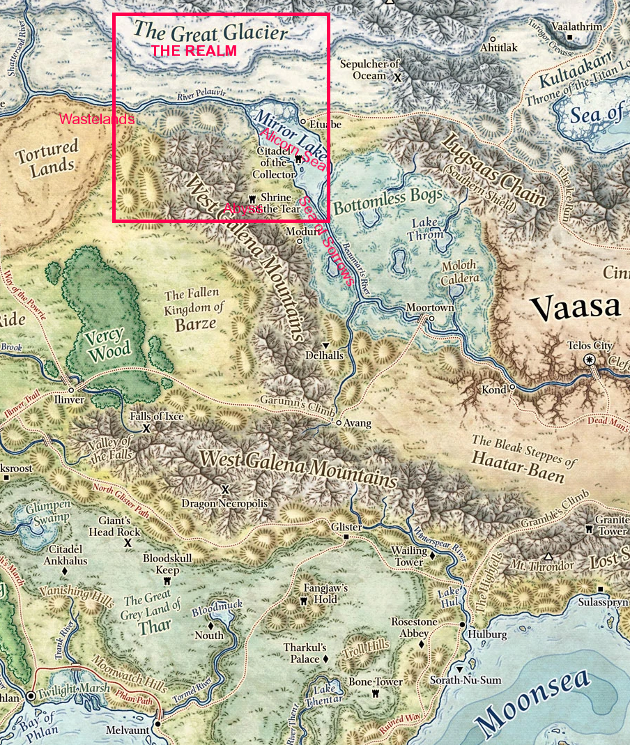 Then the "Waste Lands" at the W of the Realm map is the Tortured Lands in Faerun.