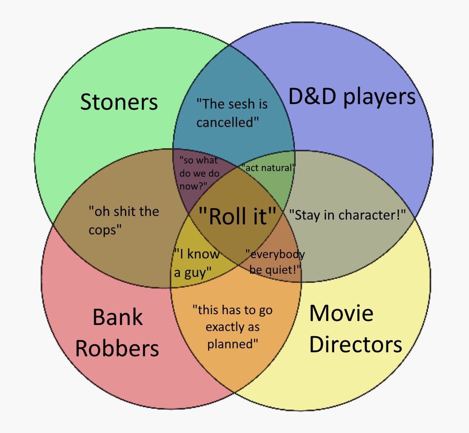 CleverNickName said: View attachment 293036 Click to expand... honestly "oh s#*t the cops(guards)", "i know a guy" and "this has to go exactly as planned" are also all things DnD players are likely to say, just usually in character.