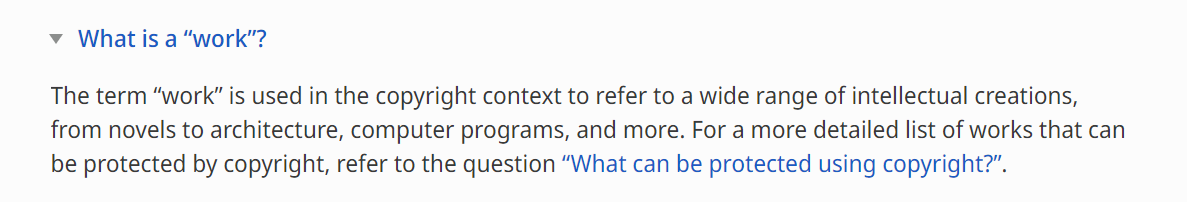 I'm not sure I follow your logic. Licenced material doesn't have to be a 'work'. The licenced material can be a database or other material. That seems to cover a lot of ground.