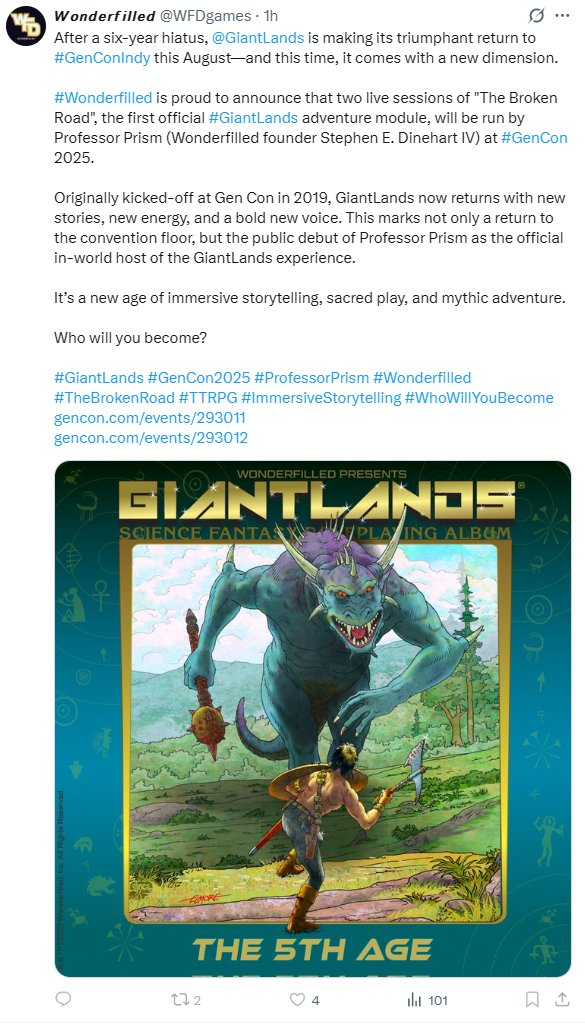 So the Giantlands folk(s) are trying to pretend that their very noticeable racist tirade/psychotic break never happened, announcing that Dinehart himself will be running "The Broken Road" at GenCon.