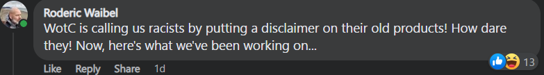 • Late June 2021. TSR3 embarks on an astonishing social media campaign where they tell people who don't like Gary Gygax not to play D&D, call a trans person on Twitter 'disgusting', thank the 'woke' because sales are up, insult Luke Gygax, and more. They also block or insult those who question them on Twitter.
