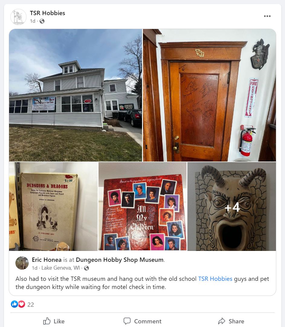 Also linked to TSR3 is the Dungeon Hobby Shop Museum in Lake Geneva, Wisconsin. Much of TSR3’s commercial business appears to be conducted via the museum.