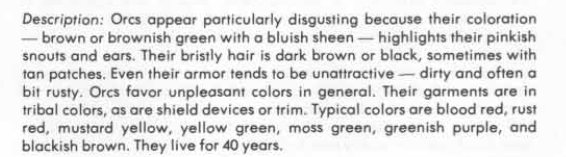 I think it's also worth mentioning that in order to get to this bit, Justin had to gloss over... almost the entire rest of the summary of orcs in the original monster manual as well as the finer points about the specifics of what the source of disgust is.