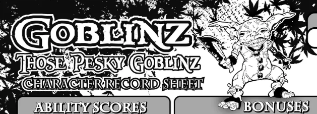 We Be Goblins! also has similar layouts for the characters you play, to those for the character classes available in Goblinz: Those Pesky Goblinz. A Role-Playing Game by Justin LaNasa, and it gives each individual character a trait. This also lays out lots of personality traits that Justin seems to give to his goblins such as keeping monsters for pets, being pyromaniacs, worshipping dark gods that demand they be terrible, engage in cannibalism, baby eating, raiding villages, etc, etc.