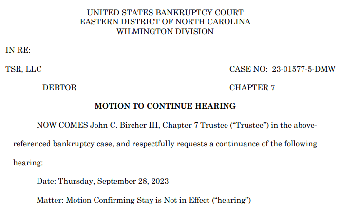 • June 8th 2023. NuTSR files for bankruptcy. The case between WotC and NuTSR is postponed until March 2024.