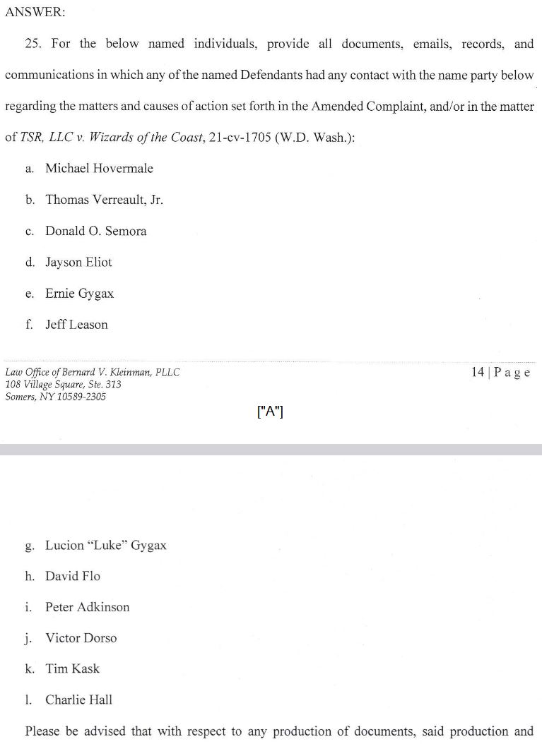 • May 17th 2022. A jury trial date is set for the TSR/WotC lawsuit for October 2023 (few suits like this actually make it to trial in the end).