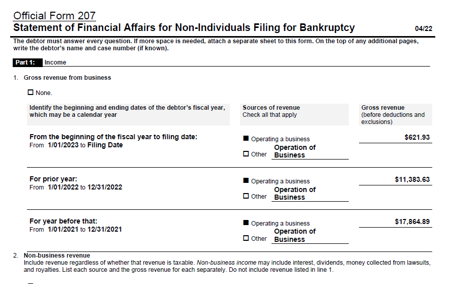 And that company owes nearly twice this to Justin... for rent of two rooms.