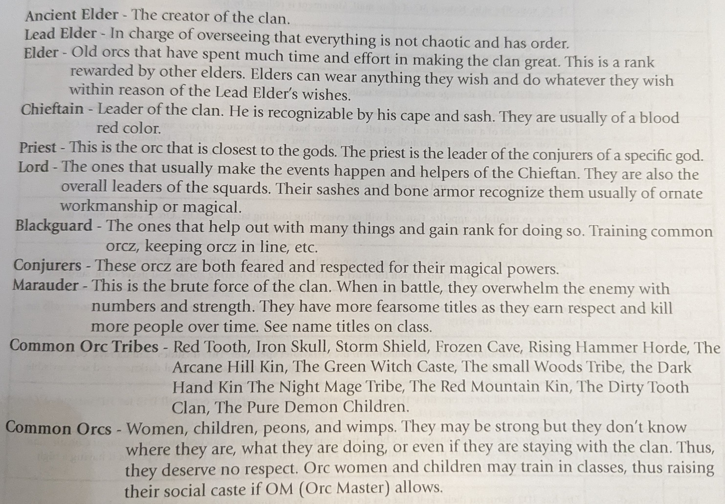 The most recurring problematic content in the book is rampant discrimination against women. To start, the game outright says that women are the lowest caste of orc.