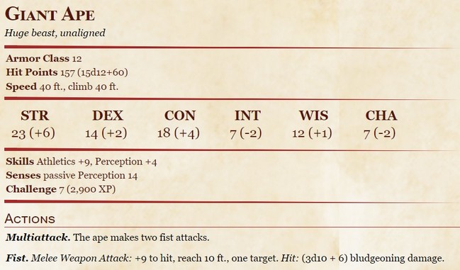 A regular Ape only has Str 16 and does a d6 damage with a punch- as much as a short sword. Is that also a bad argument?