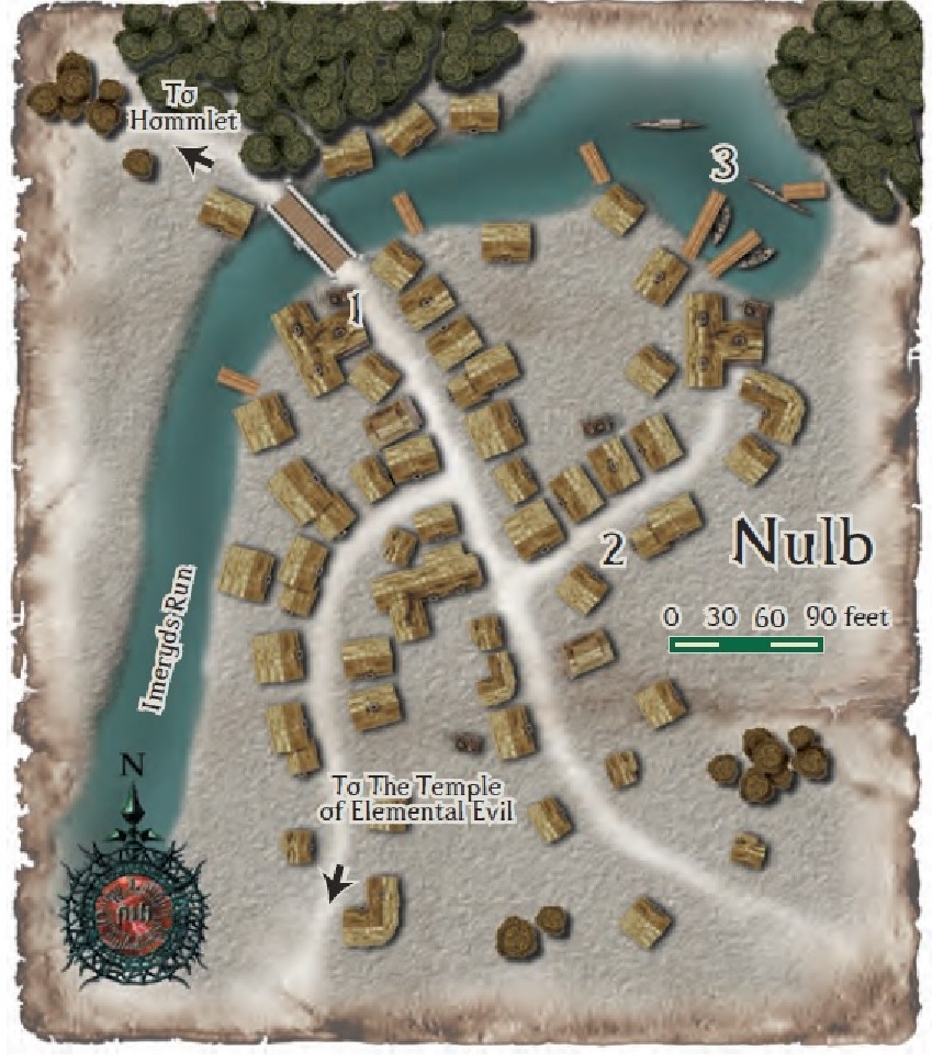 Burne stops the party as they are about to depart this morning; as a reward for rooting out the cultists in his town, Burne shares a secret with the party; Burne, a powerful wizard in his own right, is the apprentice of a powerful Arch Mage by the name of Bardulok The Faithful, who lives nearby in the city of Verbobonc. Bardulok has created 4 permanent Teleportation Circles for Burne, in a special chamber inside Burne's fortress; one of which goes to the common room of the Greyhawk Mage Guild, another which goes to the common room of the Verbobonc Mage Guild, and the last two of which go to places that Burne felt he might need to return to one day: The Great Hall of the Moathouse, and the northern stretch of road that leads to the hamlet of Nulb (about 300 yards north-northwest of the main bridge.)