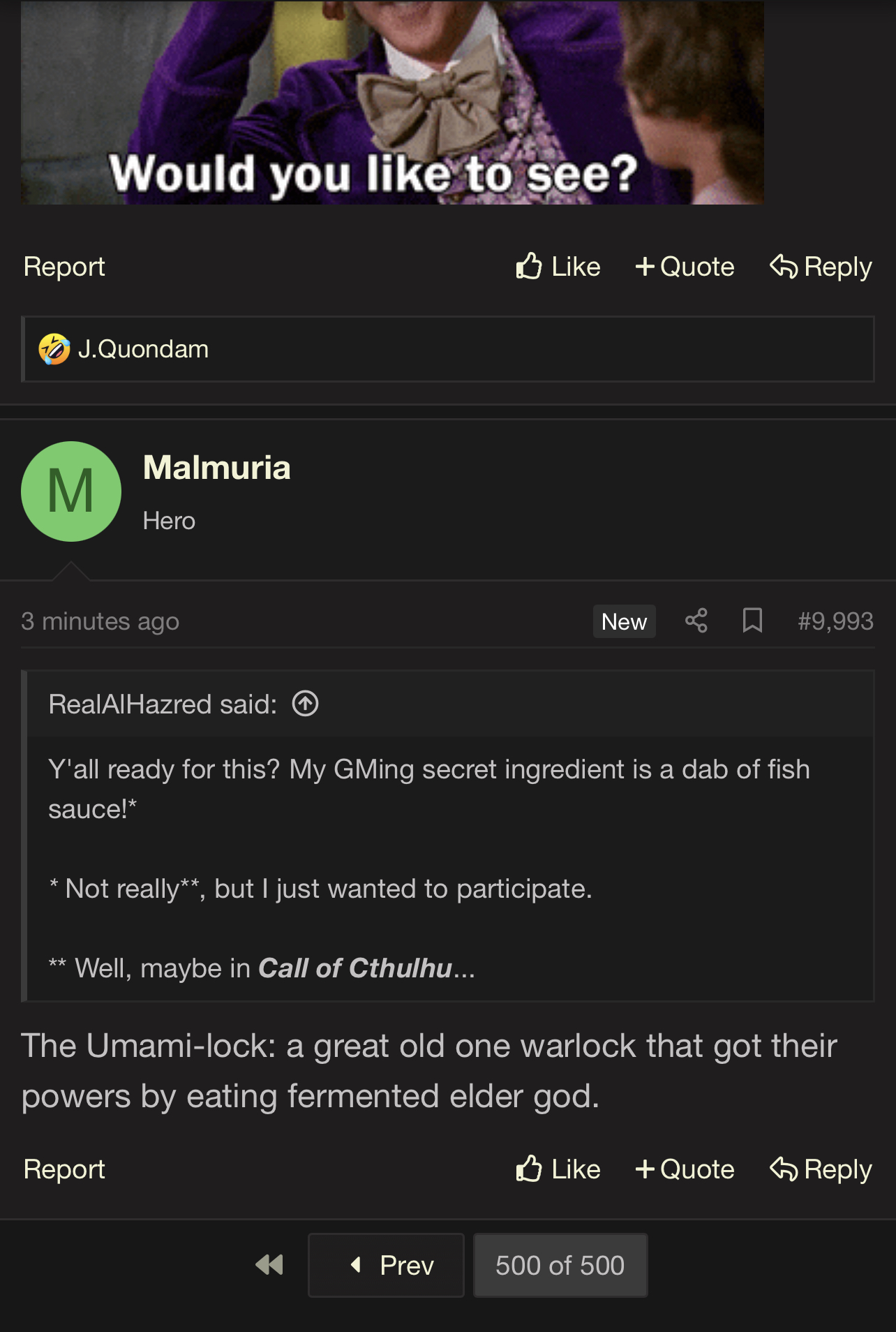 The Umami-lock: a great old one warlock that got their powers by eating fermented elder god.