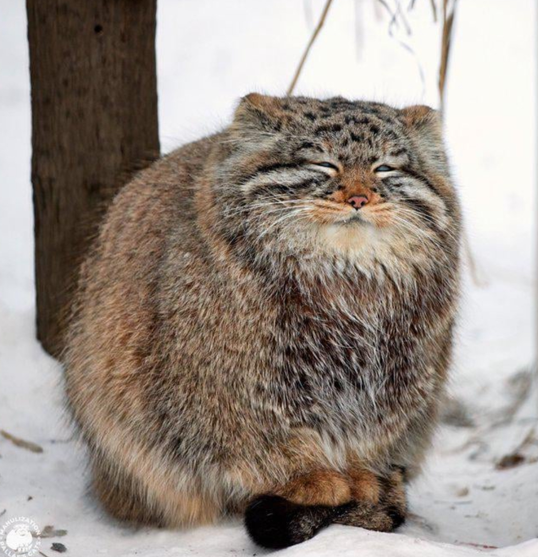 the thing with Pallas cats is that only weigh like 15 pounds or so as adults, and are built like domestic cats. That’s all fur, because they live in places like the Himalaya and steppes of inner Asia. Among other adaptations, note he rests his little paws on his tail for extra insulation.