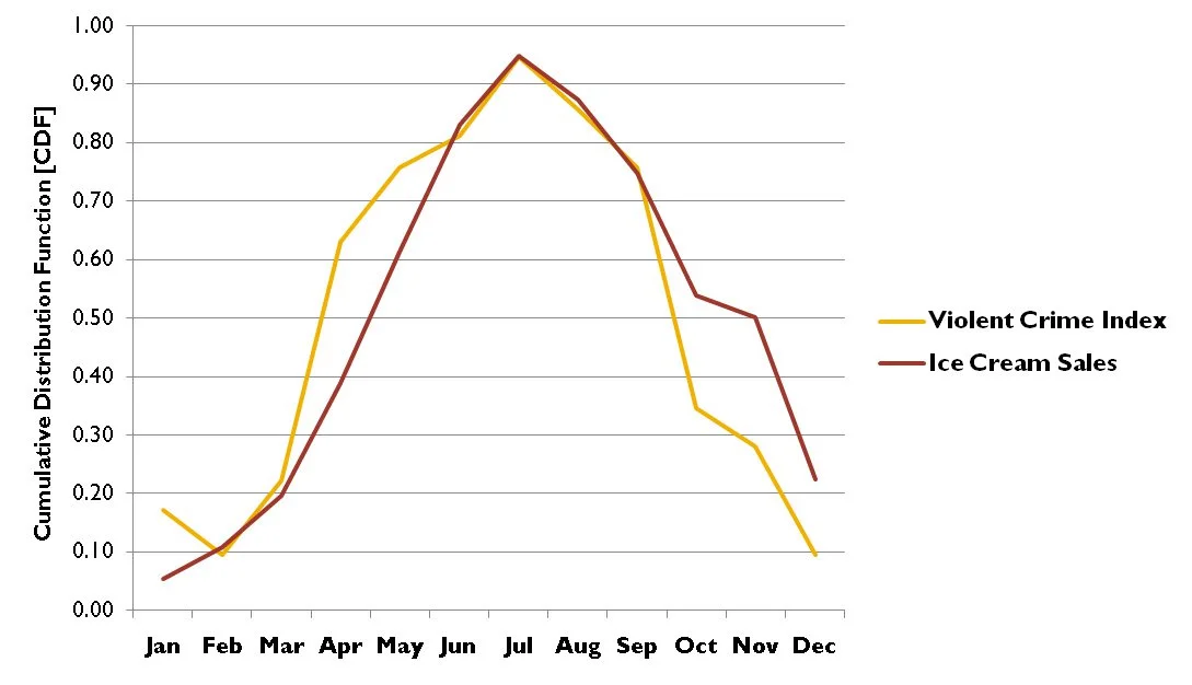 Violent crime causes ice cream sales to decline? This is outrageous. If we ban violent crime will it save our precious ice cream?