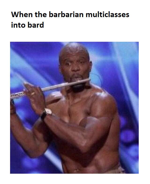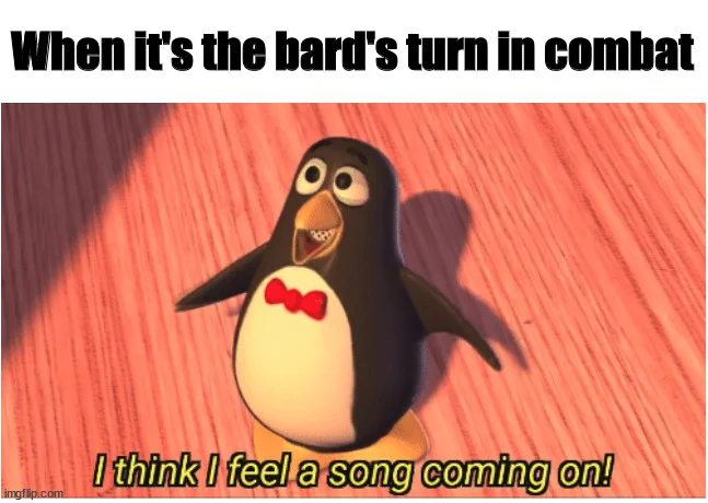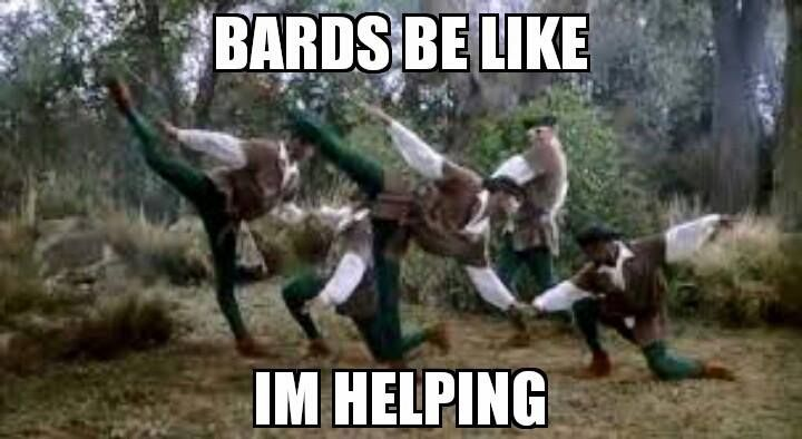 Starting a new campaign soon, andonetwo of my players have now indicated that they want to play bards. Normally I would come here to vent about this absolute trainwreck waiting to happen, and Snarf would chime in and the two of us would commiserate about this ridiculous punchline of a character class...but Snarf is no longer here. I'll have to let bard memes do the mocking for me.