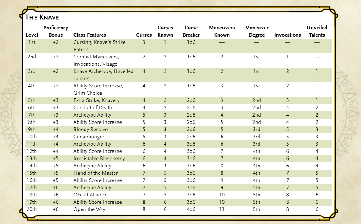 Why, yes, I did write it up as a Level Up/A5e instead of D&D24 or 5e class. But that's just because I prefer A5e. You could slot "Combat Mastery" right back in at 2nd level and make them use Extra Attack at 5th level instead of a more tailored 'Quasi-Eldritch Blast' knave's strike improvement, but... y'know.