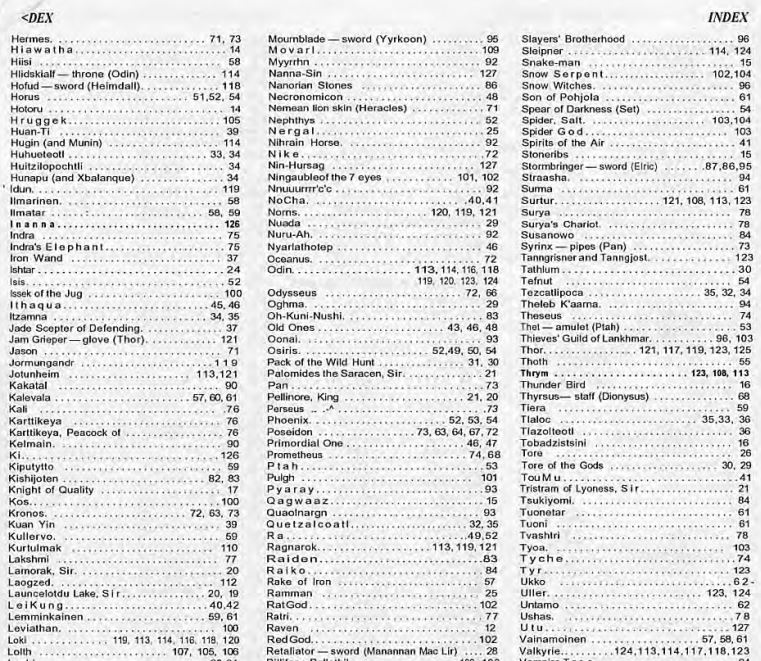 Gary gave me a format to use that was much like a monster manual listing. That was fine with me as it gave me an order and focus for each listing. I was given a thousand pieces of photocopied sheets. I put each one in my nonelectric typewriter and I typed up the deities, monsters, heroes, and other things of the pantheon. In the creation of each pantheon I did the exact same thing. I made a list of the deities. I placed an imagined value on their power and influence. This caused me to list them as greater or lesser deities. For example I had Zeus as a greater god, Artemis was listed as a lesser goddess, Heracles was listed as a demi-god for his half god parent. In the research for all the pantheons I came across creatures and heroes that were added to the pantheon. Then I looked at each character and the legends about them and made up magic statistics on the items that legends reported. I sent each pantheon for Gary to review and generally he liked all of them.