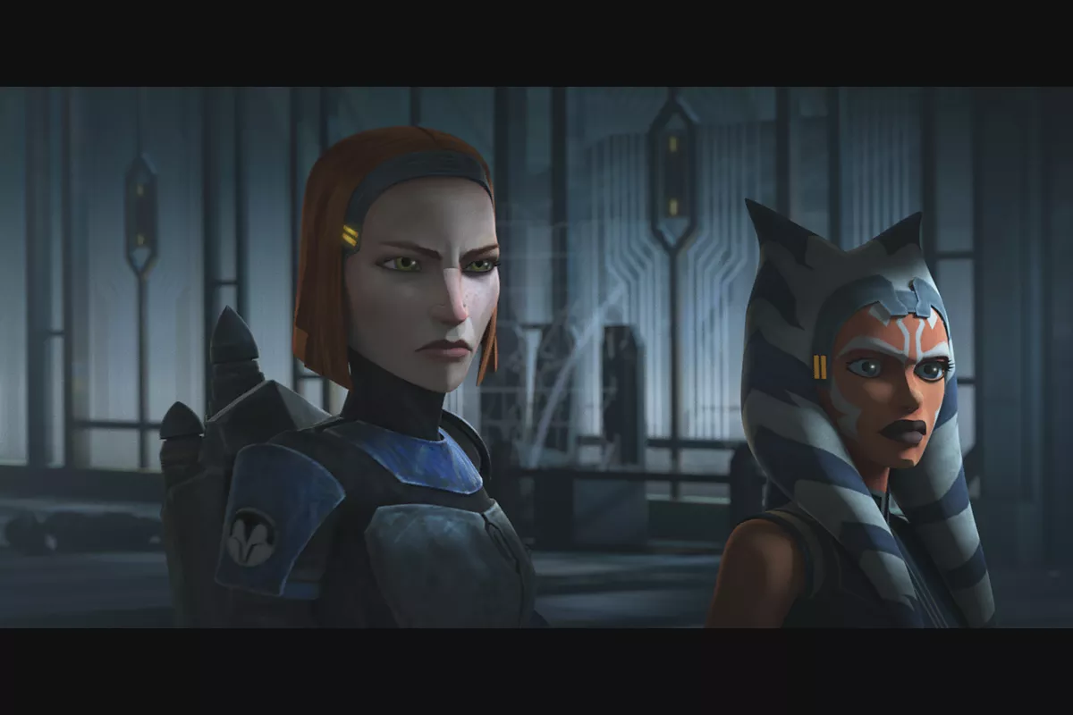 Tano is noticeably younger by a year or two (she's likely around 15 years old here) and she was born 36 BBY, making Ashoka canonically 45 years old in the Mandalorians timeframe of 9ABY.