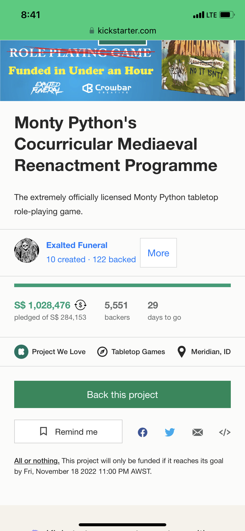 Monty Python's Cocurricular Mediaeval Reenactment Programme, the offical licensed Monty Python roleplaying game, just went live on Kickstarter!
