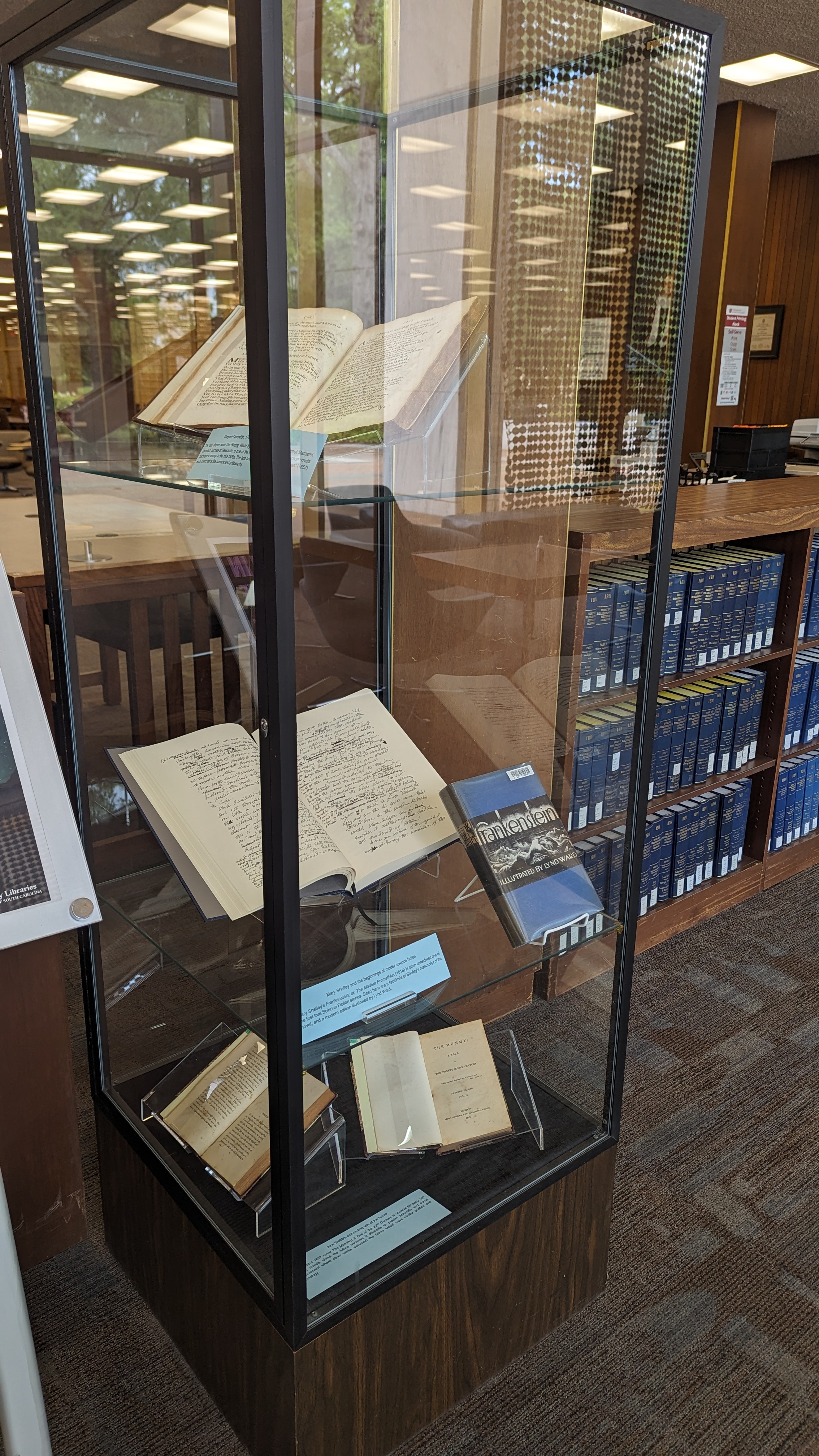 The University of South Carolina Thomas Cooper Library currently has a small display on "Women in Science Fiction: From Frankenstein to Dungeons and Dragons." (Click on thumbnails below to see larger versions).