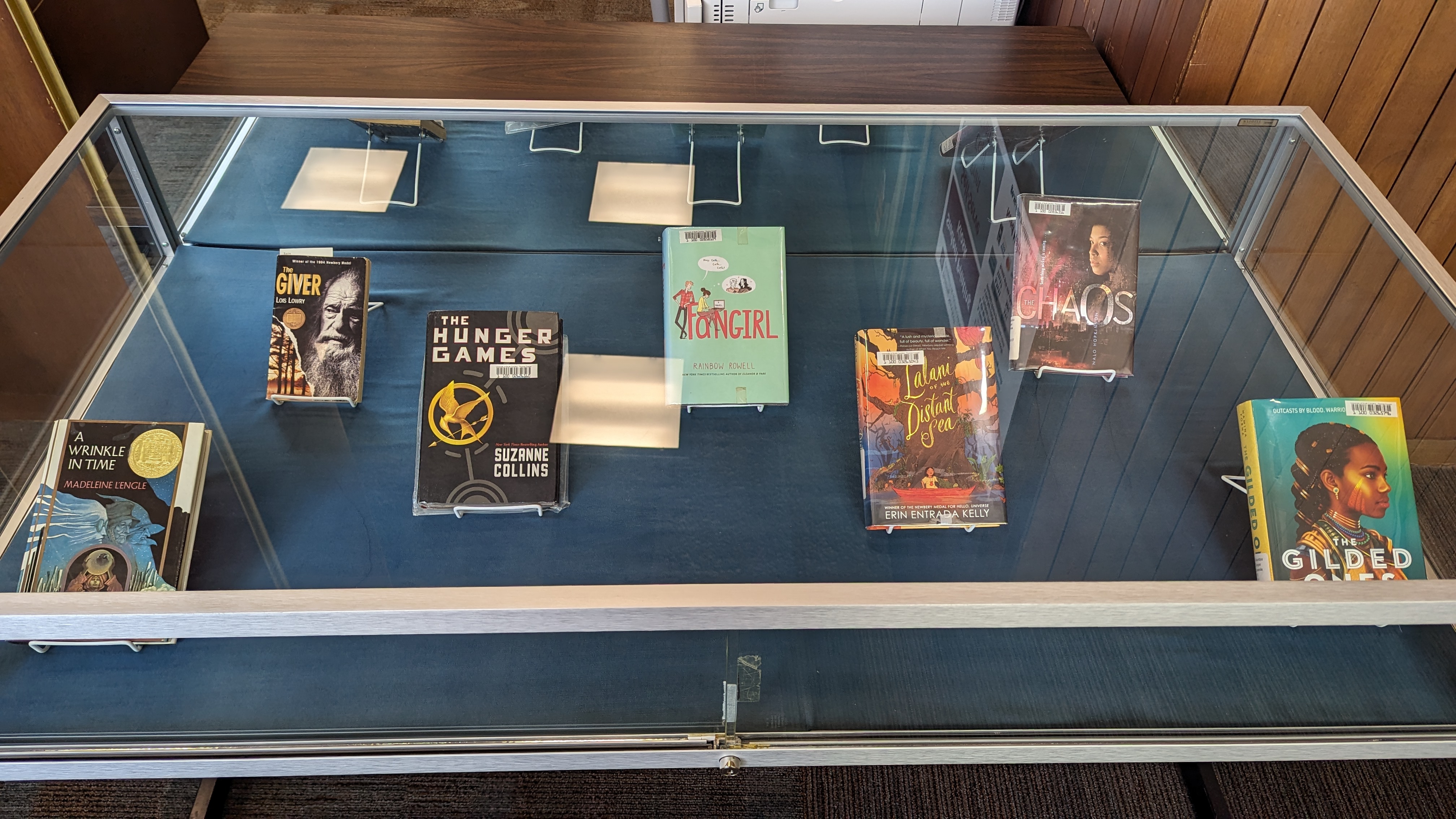 It consists of two upright display cases and three flat ones just inside the doors to the right.