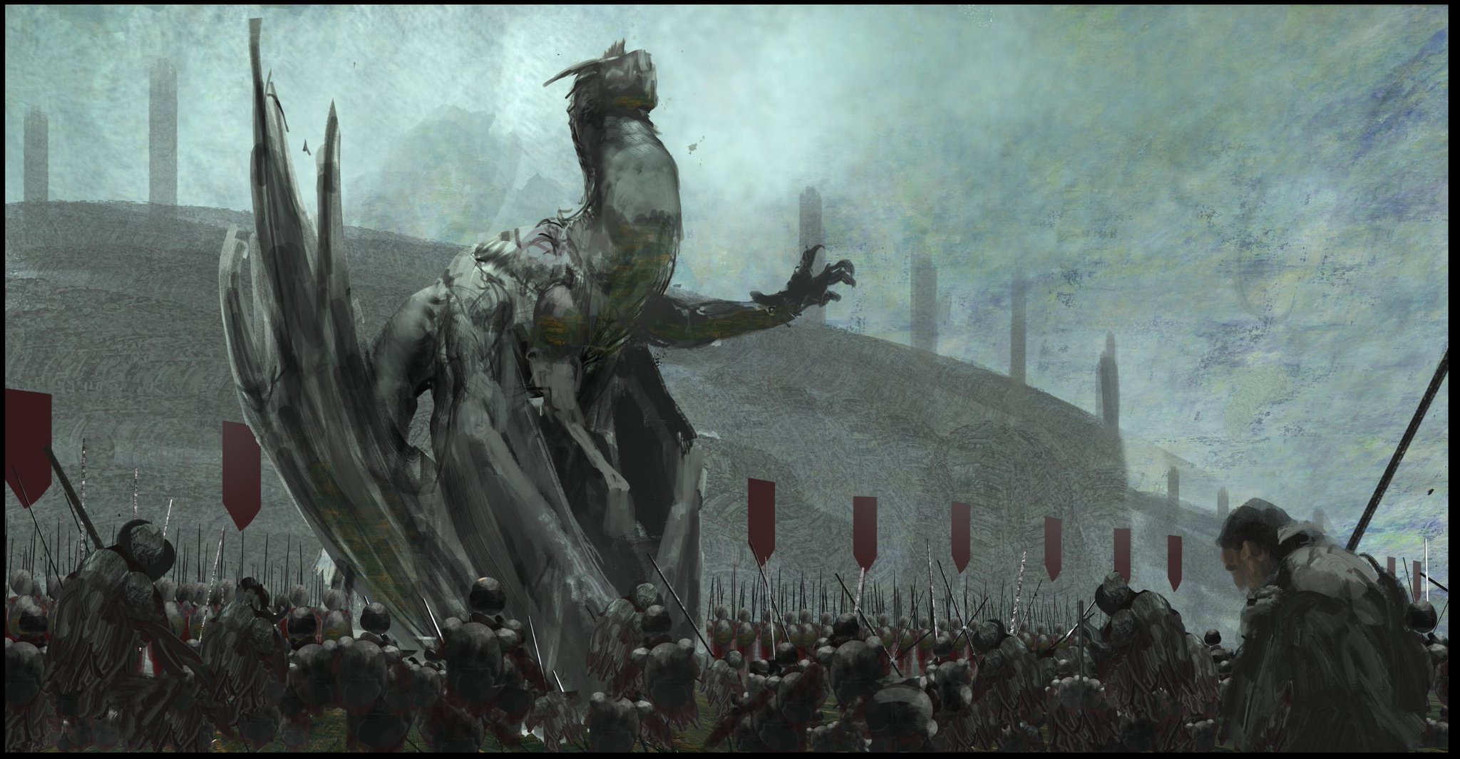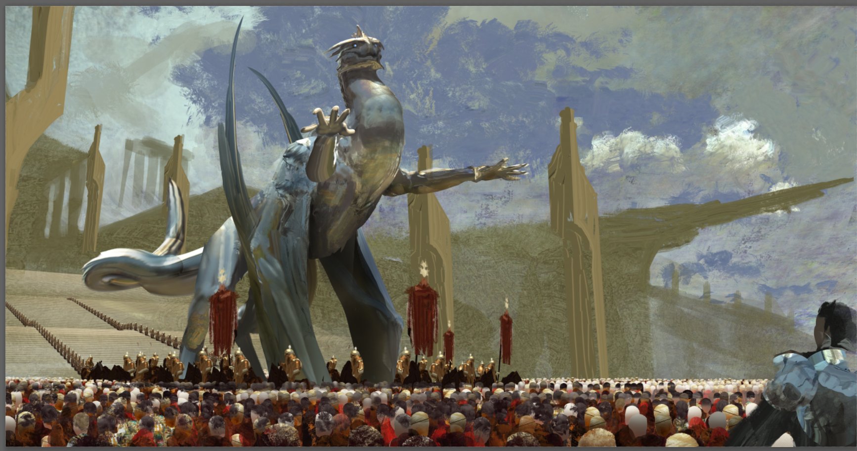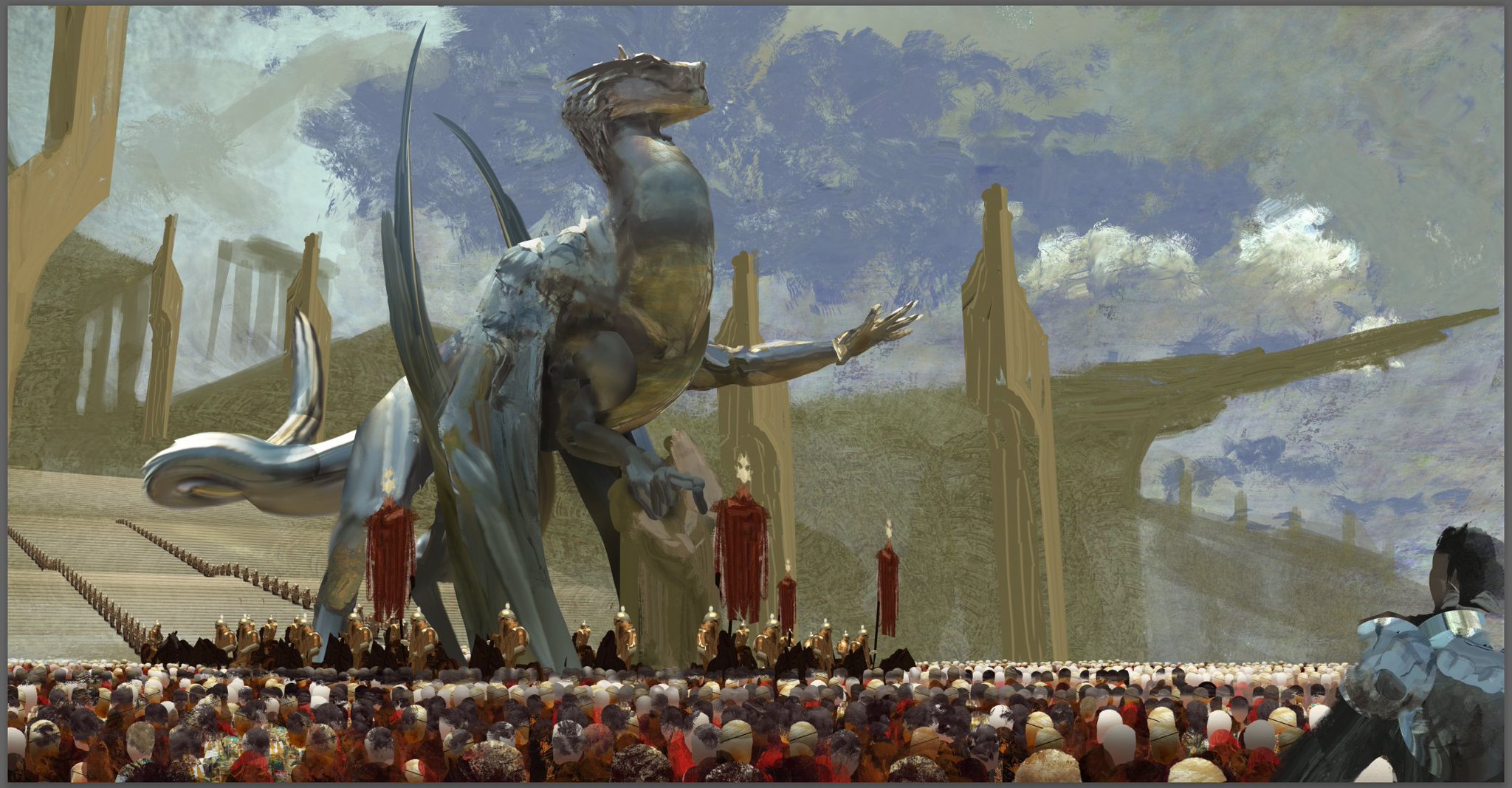 I like this much more than the silver dragon. FWIW, I don't think AI has anything to do with it. I reckon some of the figures in the foreground of the dragon pic just aren't very well done. Anyone remember the 5e halfling?For context of Campbell White's styles and capabilities, here is a piece from 6 years ago which cannot have any AI component, as the tech didn'texiat at the time: