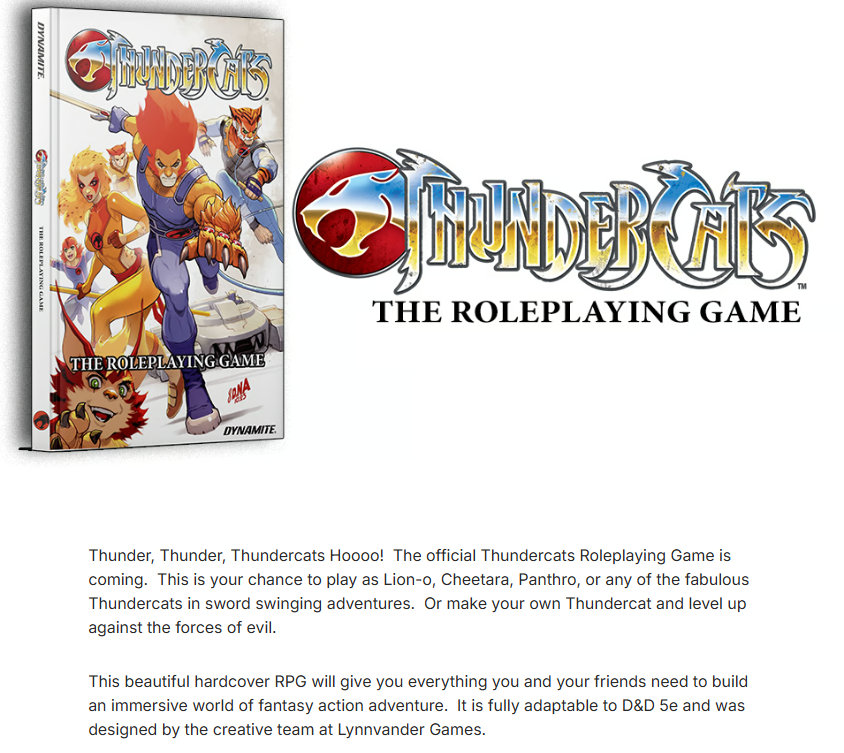 Announced this week at San Diego Comic Con by Dynamite Entertainment and Lynnvander Studios is an official TTRPG featuring the adventures of Lion-O and his fellow Thundercats as they struggle against the evil machinations of Mumm-Ra.