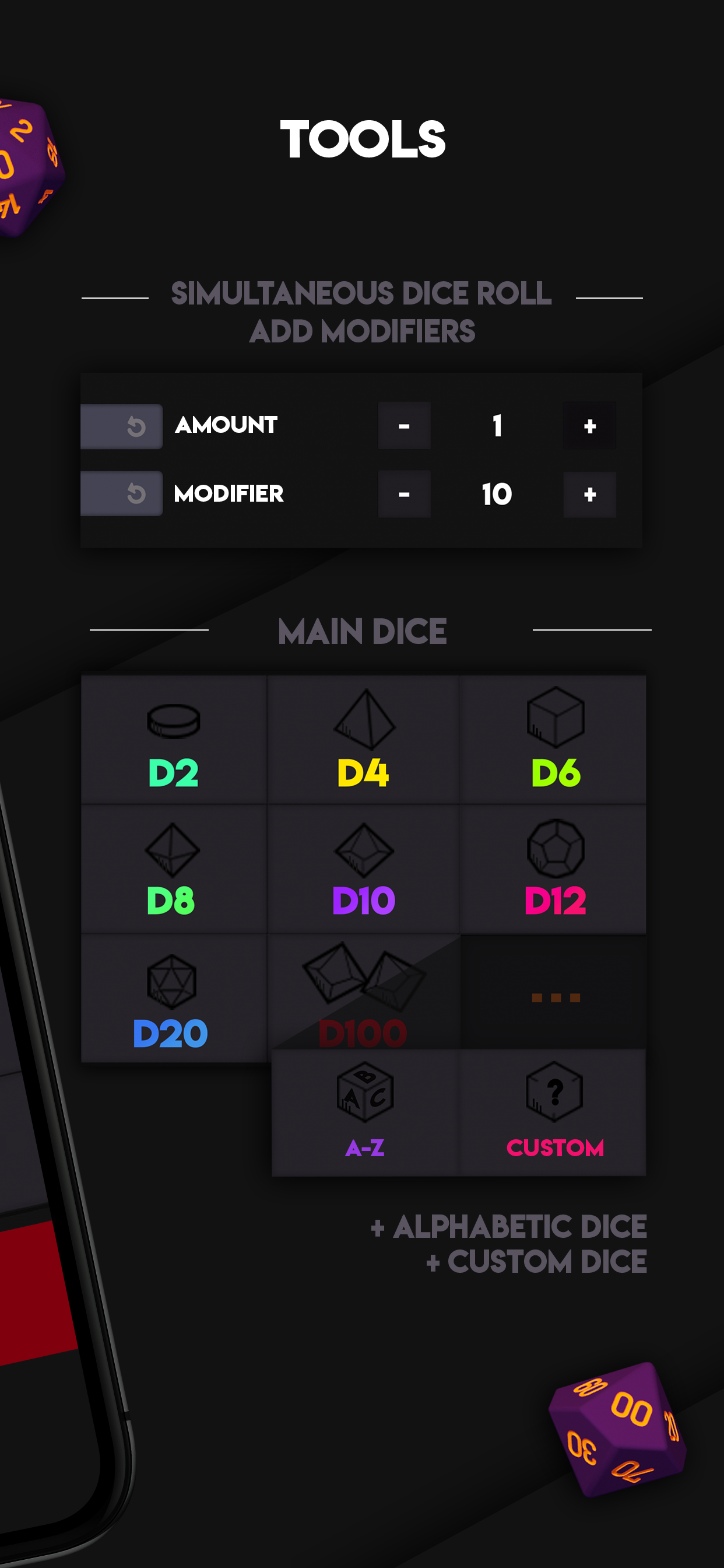 We invite you to discover our latest news. Rolld, a free app that generates different types of dices (numeric, alphanumeric, for RPG, for table games, customized) and allows you to roll as much dice as you want, add modifiers, consult the history and more, all in a very intuitive way:
