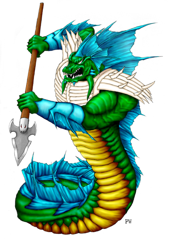 A portrait of one of my current characters. He's a Frenzied Berserker/Paladin (of Freedom). Angry, but righteous, and possessed of a 20 chr. I'm sure he looks great to the women of his kind... to your average humanoid, it's certainly debateable.