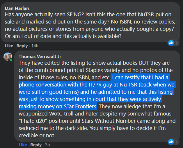 The highlighted bit is probably expected, but certainly interesting to see written down (from the Star Frontiers Alive and Well FB group. Note, Tom's credibility is not, to me, in doubt.