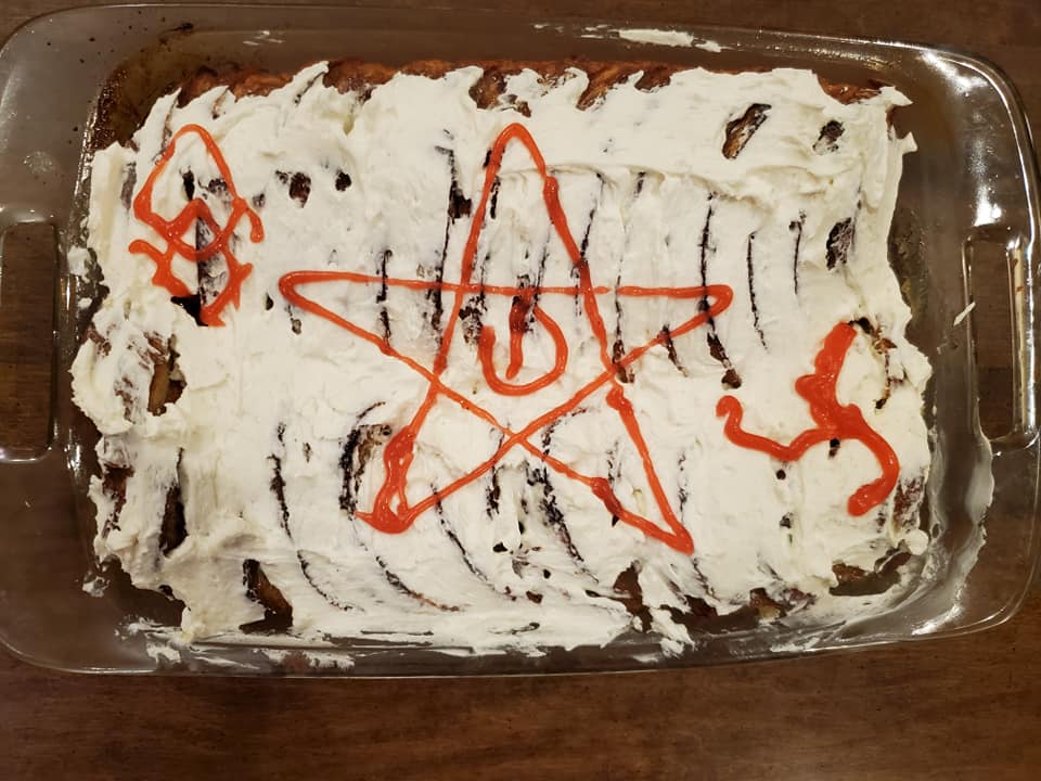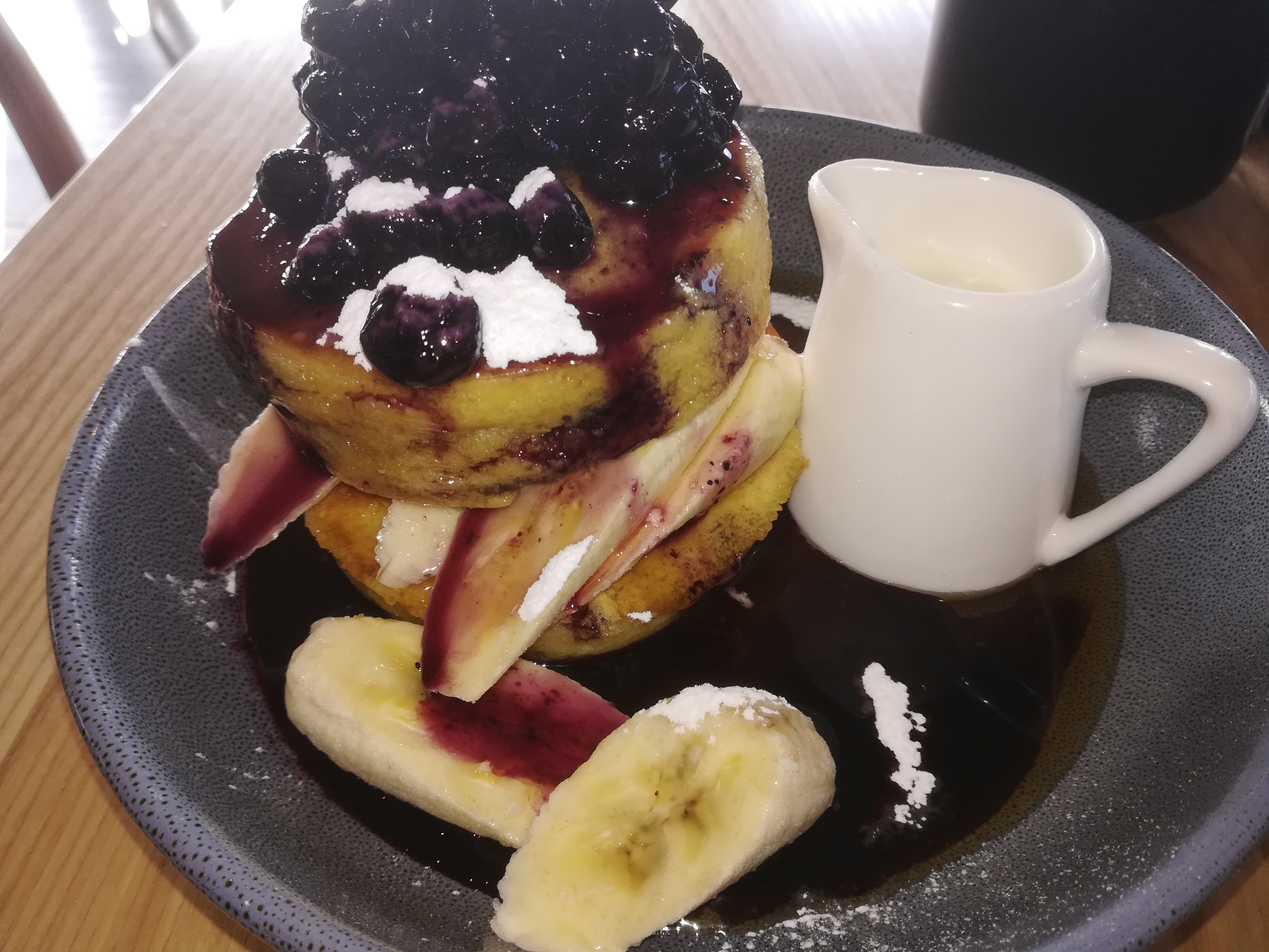 Original plane was blue berry pancakes but waitress talked us into trying this.