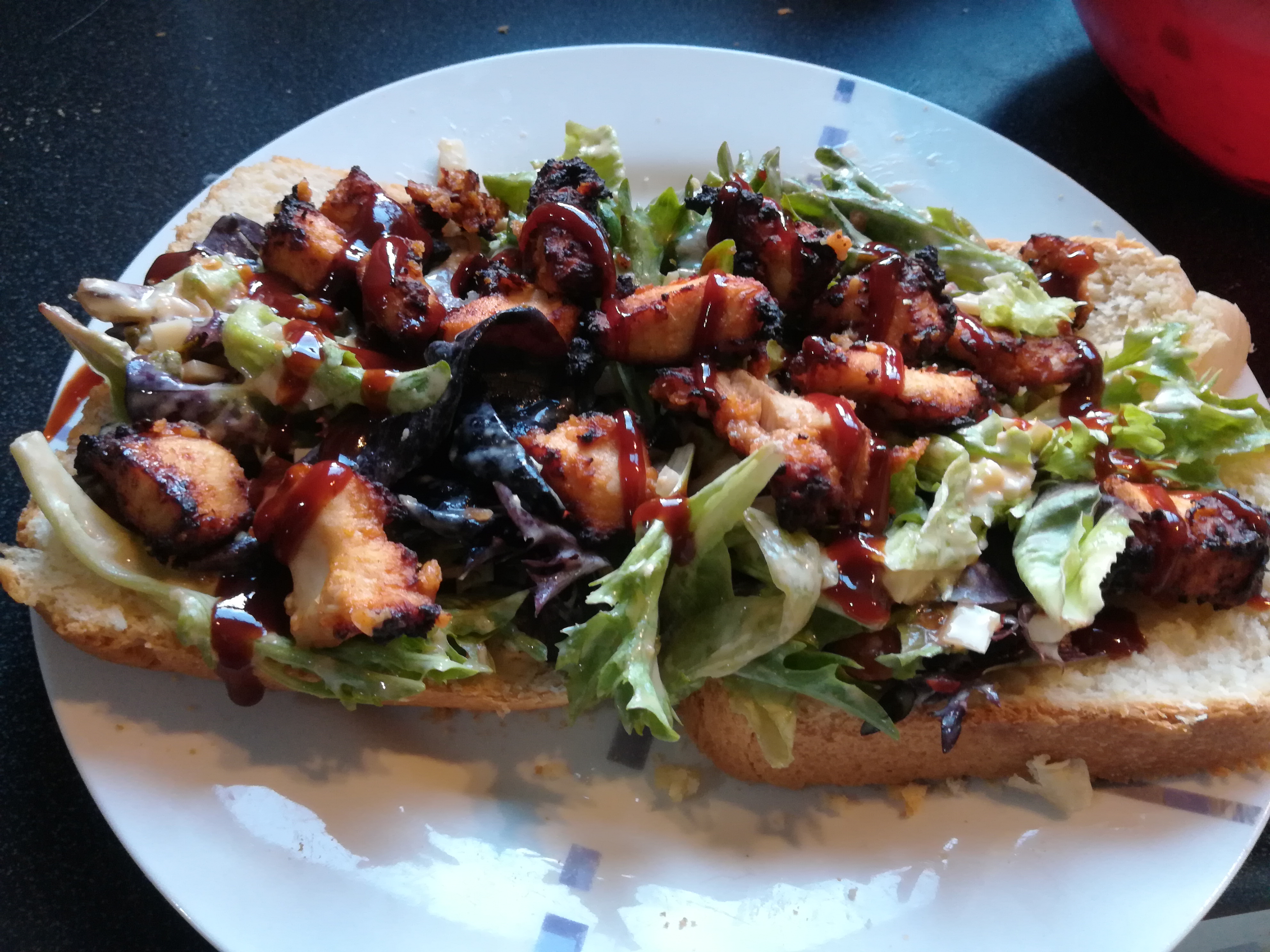 Today’s breakfast: open faced ham, chicken, egg & cheese sandwich on toasted pita