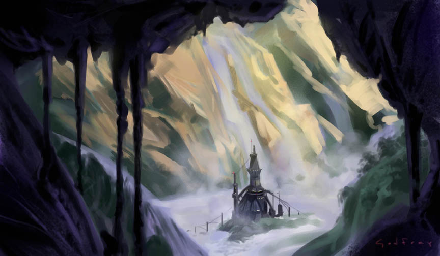 The entire world is turned on its ear as the surface of the water bursts into shimmering light like the sun. Suddently, swimming is not so much of a problem as it seems that some cosmic plug has been pulled on this underwater maze. Hundreds of gallons of water gush outward of the portal that Airole just activated, sucking her and all of her companions along with her.