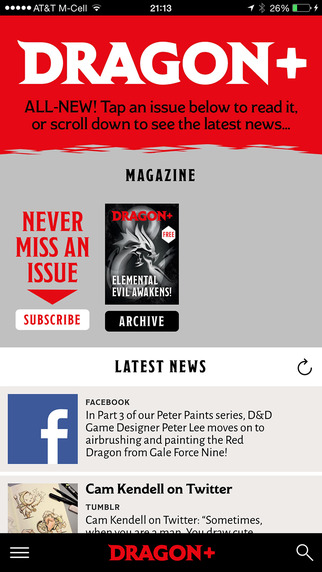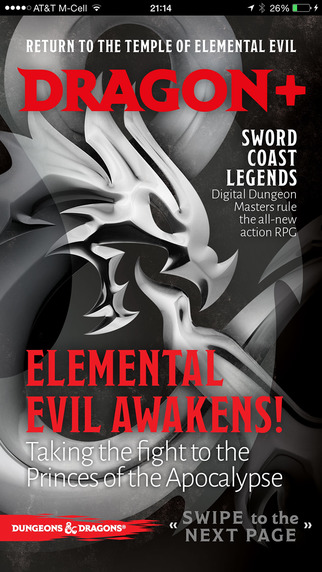 An official DRAGON app from WotC called DRAGON+ has appeared in the iOS App Store. I don't have Android so don't know if it's there too [UDPATE: Android now available]. "Dragon+ is your official mobile source for all-things Dungeons & Dragons. This free app for iPhone or iPad has everything you want to know about D&D in one easy place." The app says that "In addition to ongoing up-to-the minute news updates, every second month you’ll enjoy a new issue of Dragon+ showcasing what’s new in Dungeons & Dragons – from backstory and world information to discussions about what’s coming next with the creators and developers of your favorite D&D products." It appears to an issue-based subscription service.