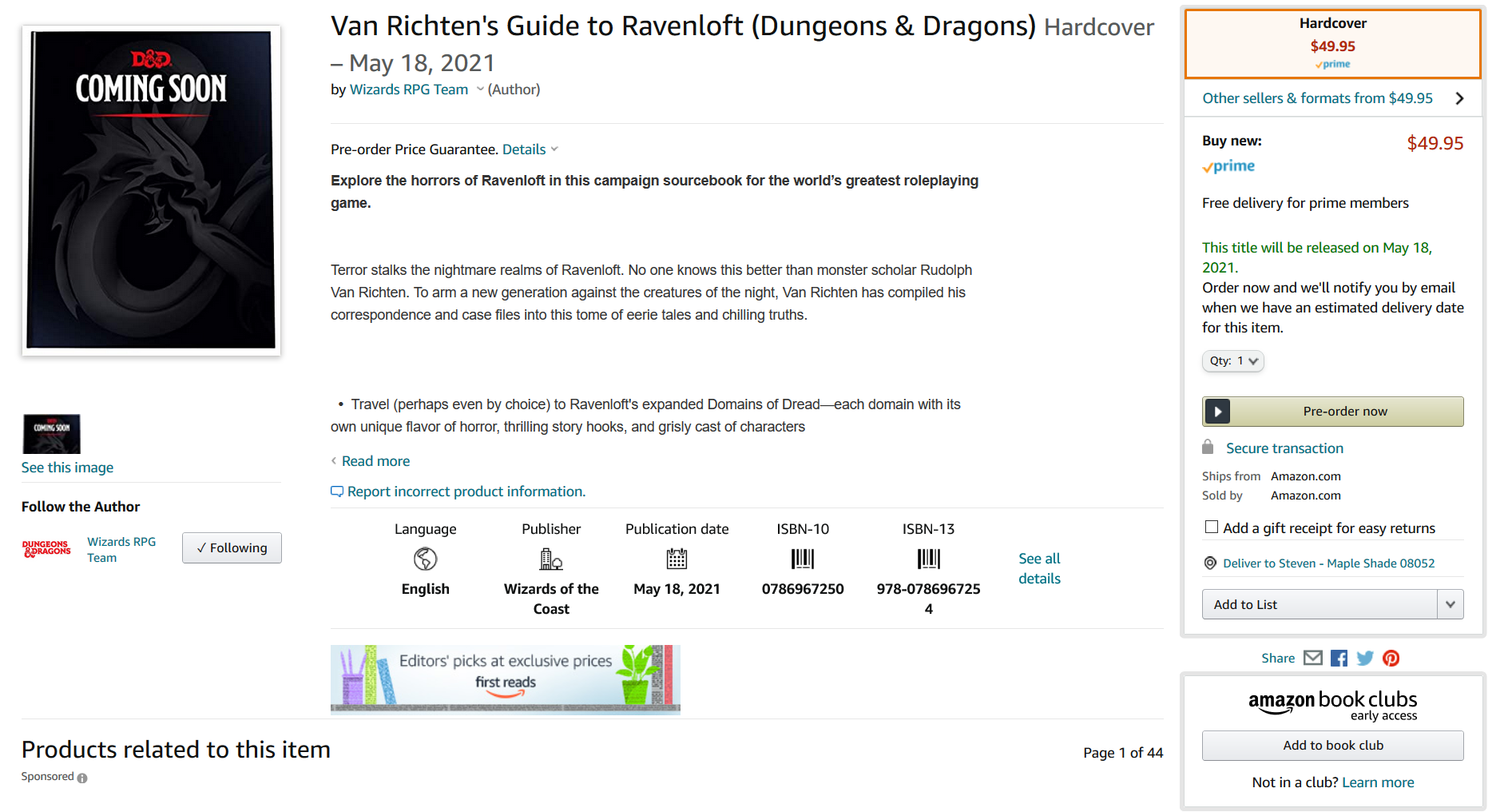 As usual, there is an alternate hobby-store exclusive cover for the upcoming Ravenloft book. Here's a look at it! And here's the full wraparound art. https://www.enworld.org/threads/updated-with-cover-the-d-d-book-is-van-richtens-guide-to-ravenloft.678411/...
