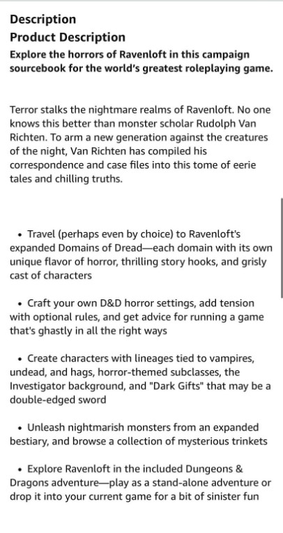 Yesterday's hints that a new D&D book would be announced today have born fruit -- we now have a product description and a title! It's a Ravenloft setting book, with tools and new rules for horror-themed games, and new horror-themed character options. I'll update this post with a product image as soon as one is revealed -- the official announcement allegedly comes today!