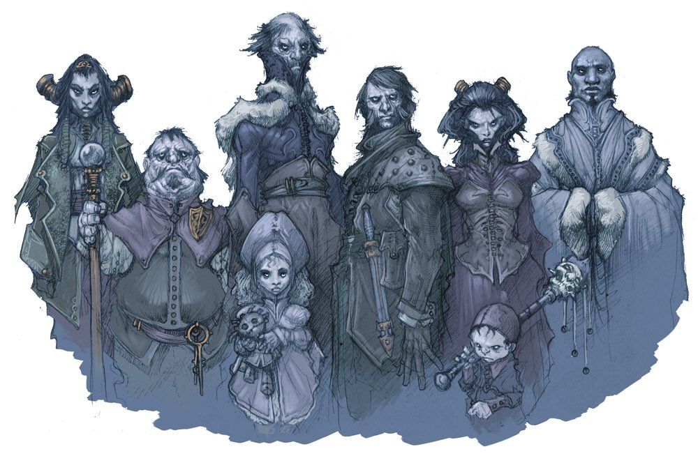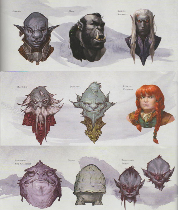 I will say for that style, it made for great tokens for VTT play.As much as I like this piece (Richard Witters I believe, who is I think D&D's art director), this style is a bit overused in Curse of Strahd, Out of the Abyss, and Princes of the Apocalypse. I would say 50% of all the NPCs in those books are drawn in that style, and though it is technically impressive, the style is so distinct (full symmetrical profile pic, looking directly at reader) it jars weirdly with every other artist's NPC depictions. Out of the Abyss below, for example. I am not surprised they have moved away from this style, even though Witters is of course a very talented artist.