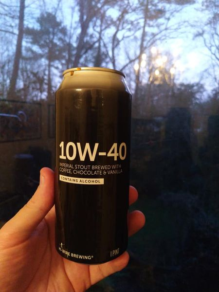 Hi-Wire Brewing 10W-40. Imperial Stout brewed with Coffee, Chocolate & Vanilla. Wow that's smooth. Nice flavor - my brain keeps wanting it to be thicker/heavier, but it's not (and I think that's a good thing). 8% ABV. The 92 (Outstanding), 4.16/5, on Beer Advocate seems justified.