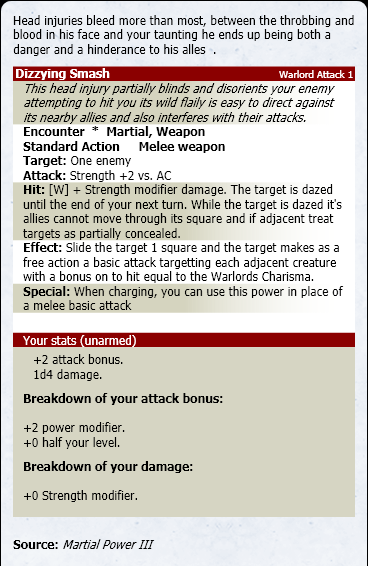 Brutal Manipulator - You often physically arrange the scenario manhandling enemies into position where they harm each other your martial exploits which induce an adjacent enemy into damaging their ally deal your strength mod damage in addition to any damage they may already deal to the one delivering the friendly fire damage. Additionally If the one attacked is adjacent to you they also take bonus of Strength mod damage.