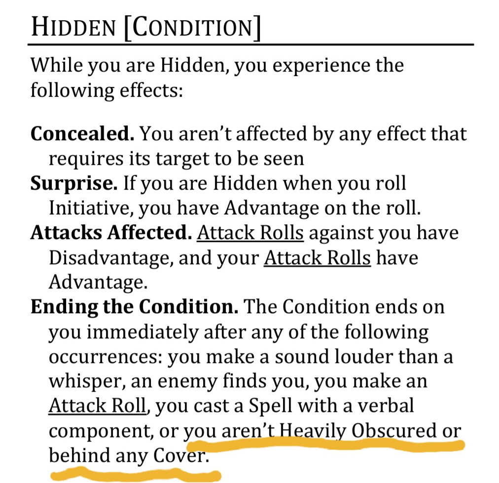 What Can You See? One of the main factors in determining whether you can find a hidden creature or object is how well you can see in an area, which might be lightly or heavily obscured as explained in chapter 8, “Adventuring.”