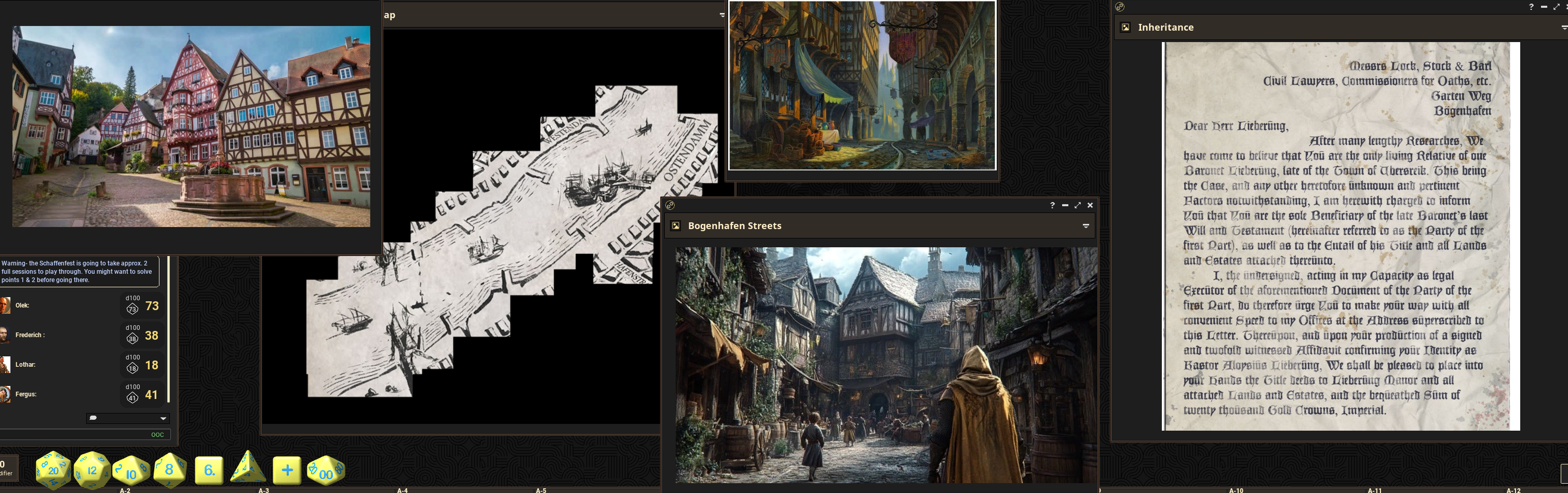 The PCs tell their story, unexpurgated, because they really have no reason to lie, and besides- Josef is family for the Hass brothers. The Bargemaster has, however, more questions- ultimately, we get to a summary of what’s happening, and why…