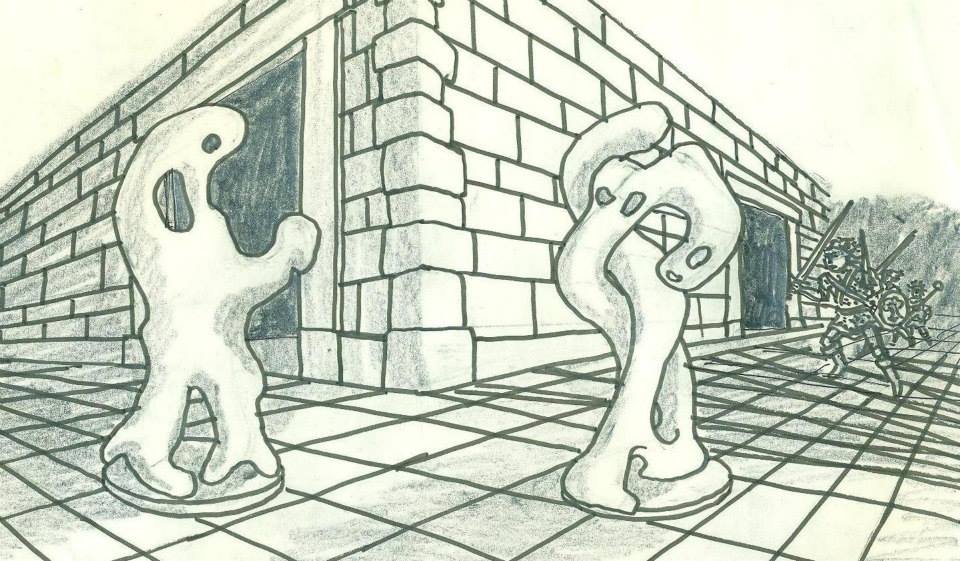 They see a strange carving of a snake headed figure on the wall.