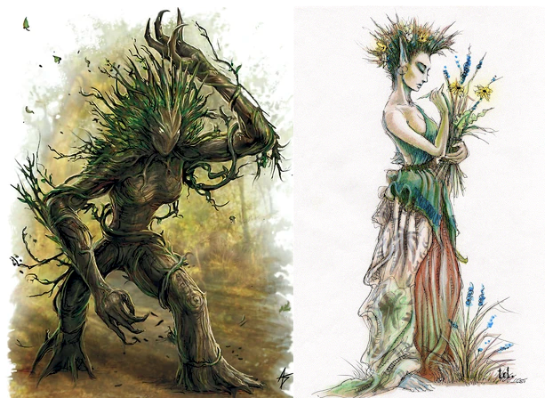 The 5e dryads, both 2014 and 2024 (I honestly prefer the 2014 impressionist one) both manage to hit all the points I'd expect - being nature spirits not ren faire humans with pointy ears, be sexy, and be wearing clothing or ornamentation that is actually natural rather than cloth.