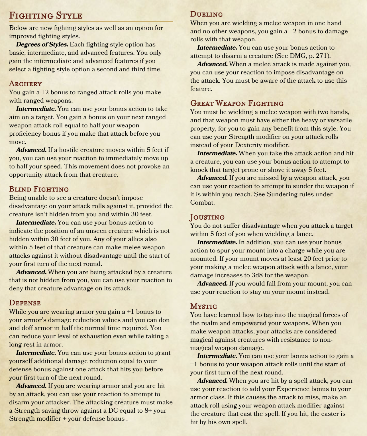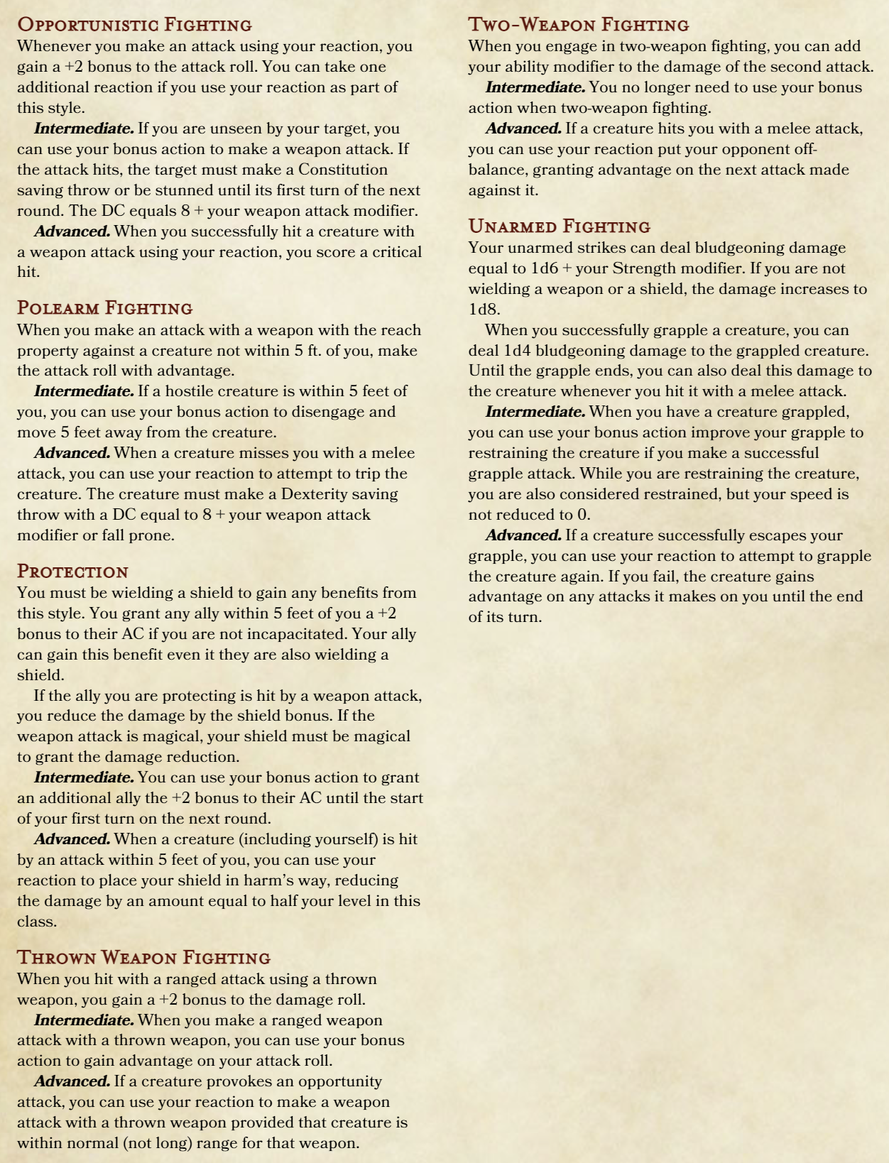 - Fighting Style